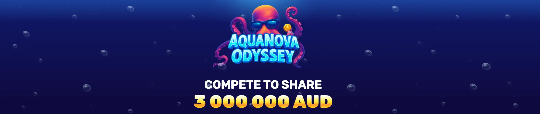 AquaNova Odyssey is Rocketplay Casino’s biggest summer event, running from 16 July to 1 September 2025 (12:00 UTC). With a massive prize pool of 3,000,000 AUD, players can take part in six underwater-themed activities, including slots tournaments, live casino contests, prize wheels and more.